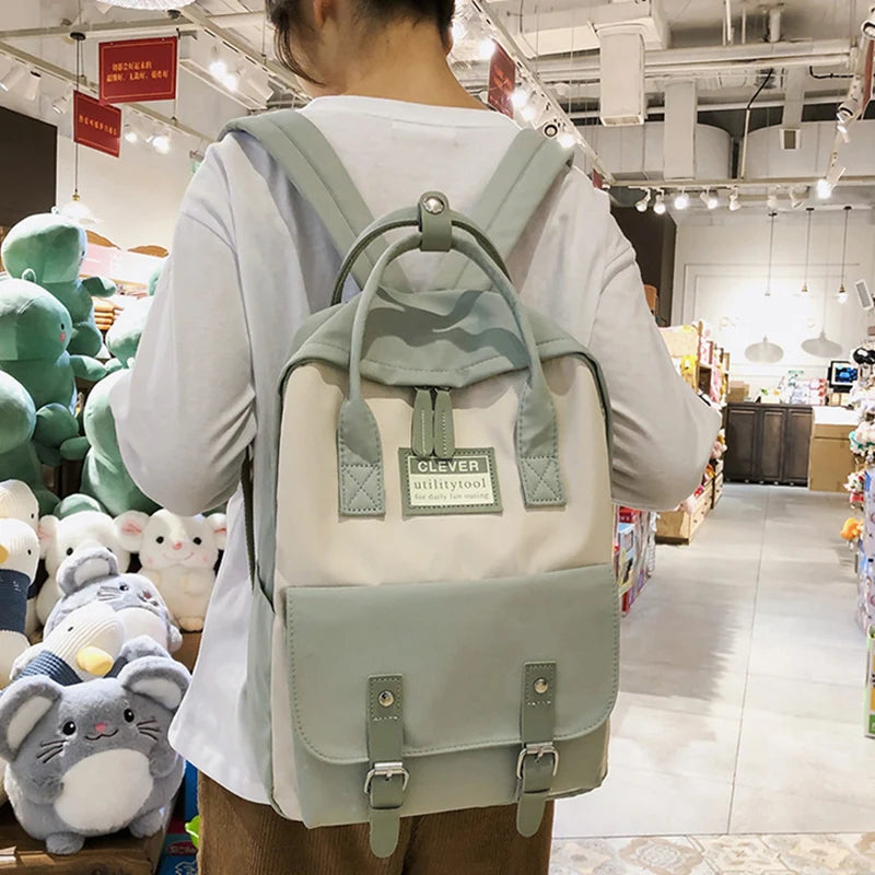 Women Nylon Backpack Waterproof School Bags for Teenagers Girls