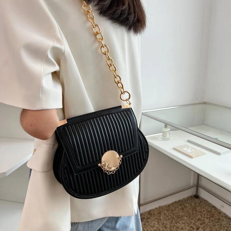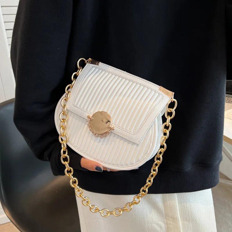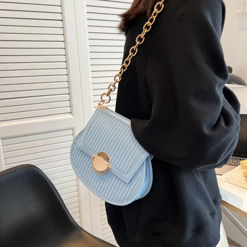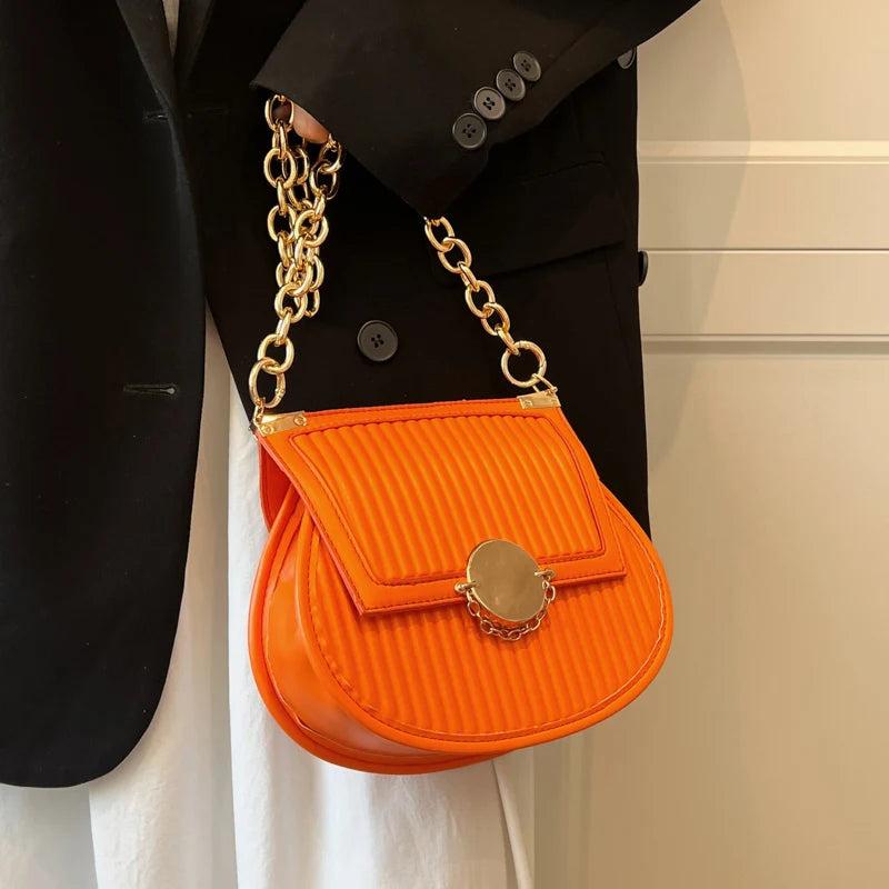 Women Orange Saddle Bag Chain Shoulder Bag Crossbody Bag