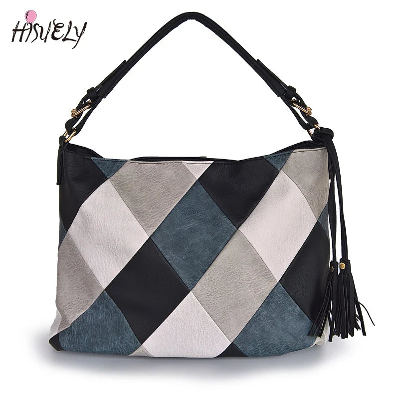 Women Patchwork PU Leather Handbags Top-handle Messenger Bag