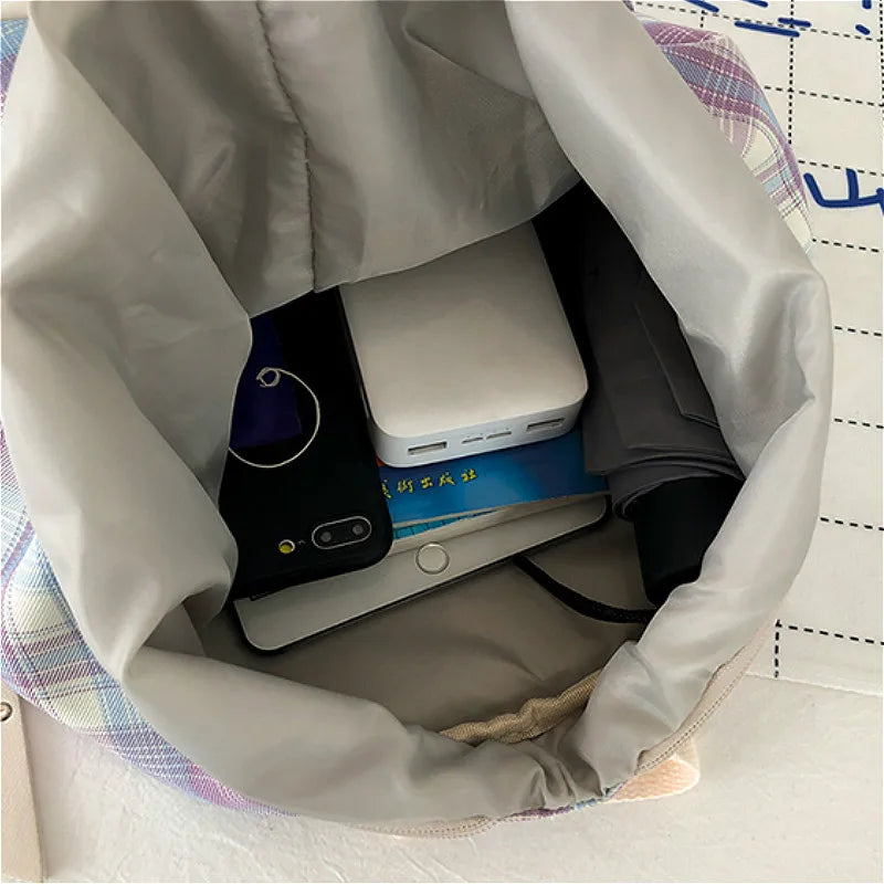 Women Plaid College Style Designers Nylon Sweet Backpack