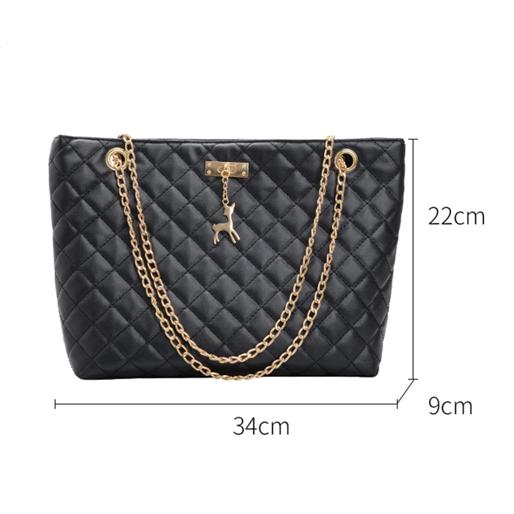Women PU Leather Chain Handbag Large Top-handle Tote Shoulder Bags