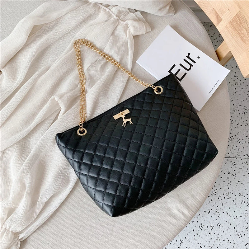 Elegant women's handbag made of high-quality PU leather with a stylish chain design. Perfect for everyday use or special occasions.