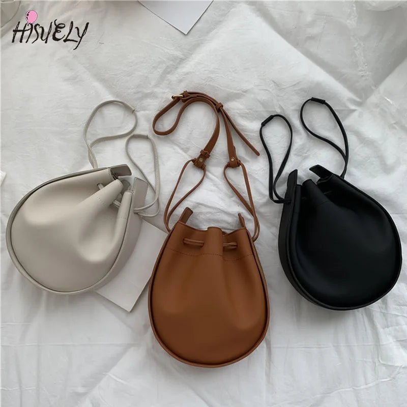 Elegant and stylish PU leather handbag with bucket design, perfect for daily use.