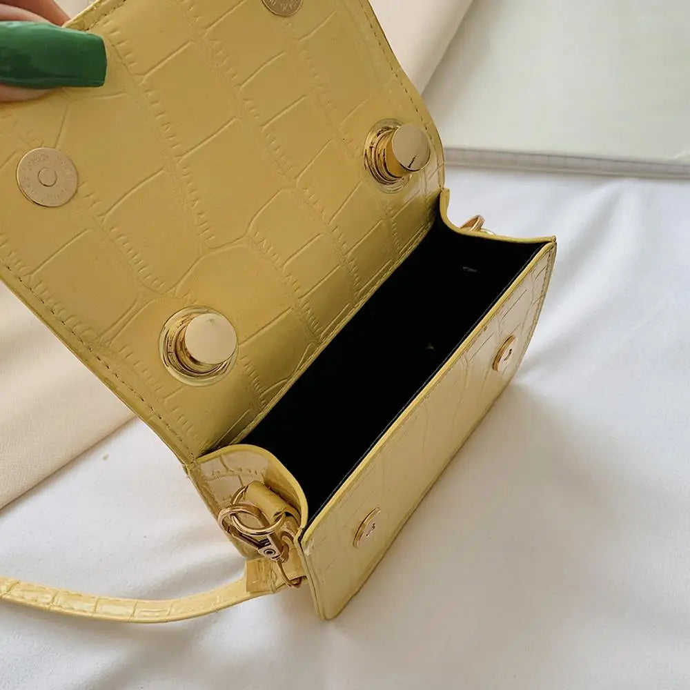 This stylish mini shoulder handbag is made of high-quality PU leather, perfect for casual use. It features a pure color design and a convenient flap closure.