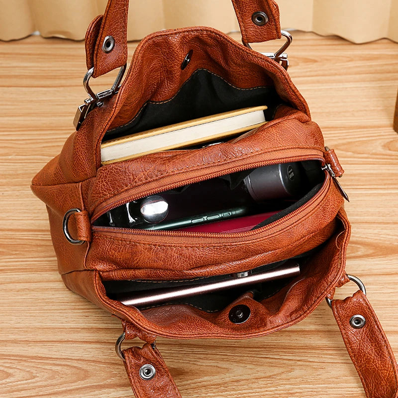 Women Pu Leather Shoulder Bag Crossbody Soft Messenger Multi-layer Tote