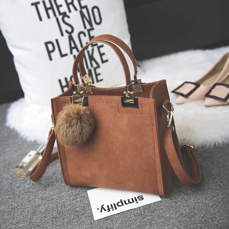 Women PU Leather Shoulder Bag Female Flap Handbag Messenger Bags with Hair Ball