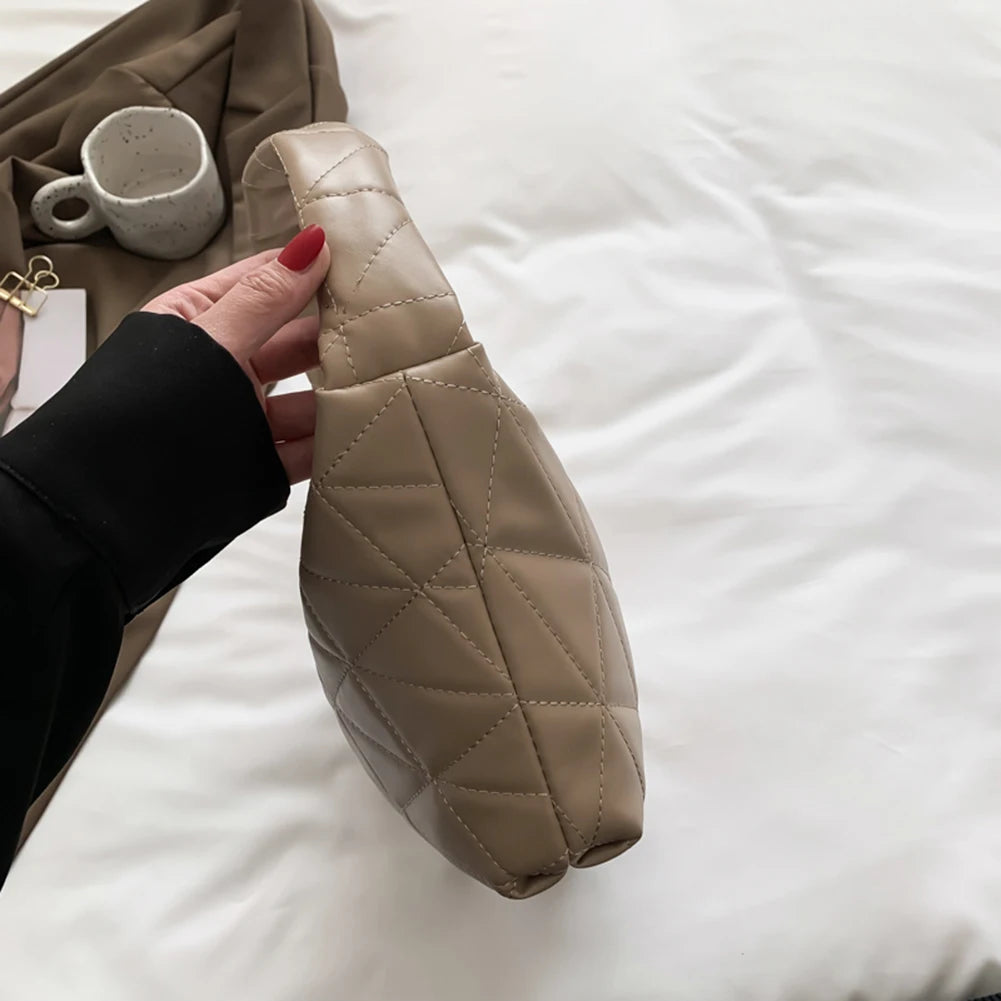 Women PU Leather Shoulder Bag Quilted Rhombus Pattern Solid Clutch