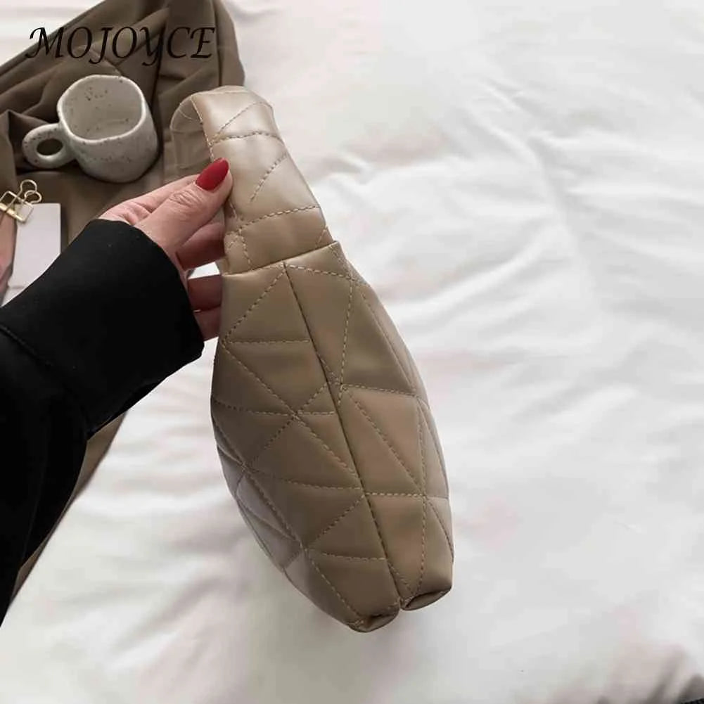 Women PU Leather Top-handle Shoulder Bag Quilted Rhombus Pattern Solid Clutch