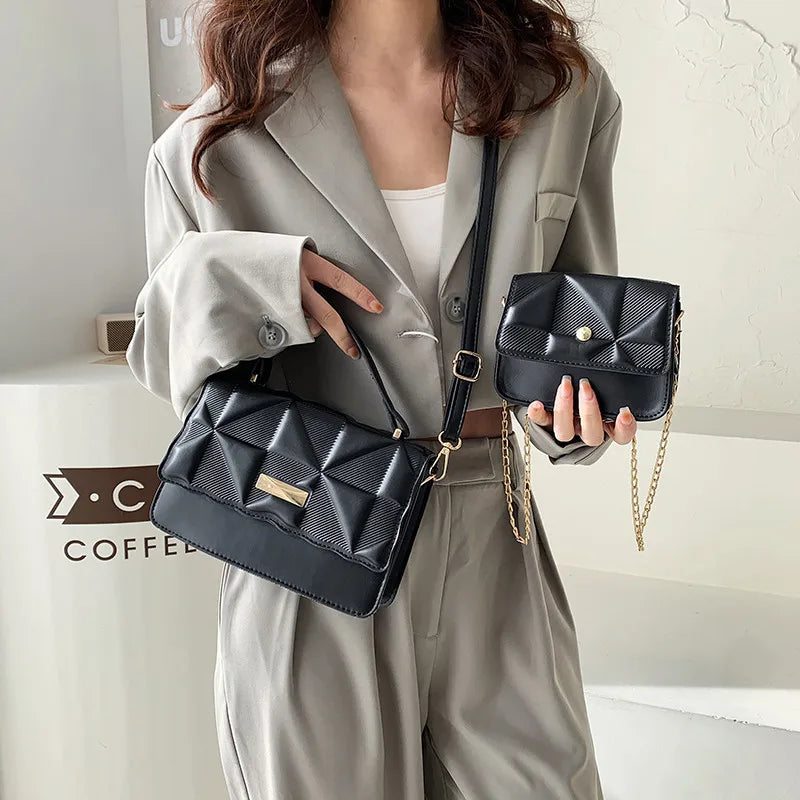 Women PU Leather Tote Crossbody Bag Set Plaid Shoulder Bag