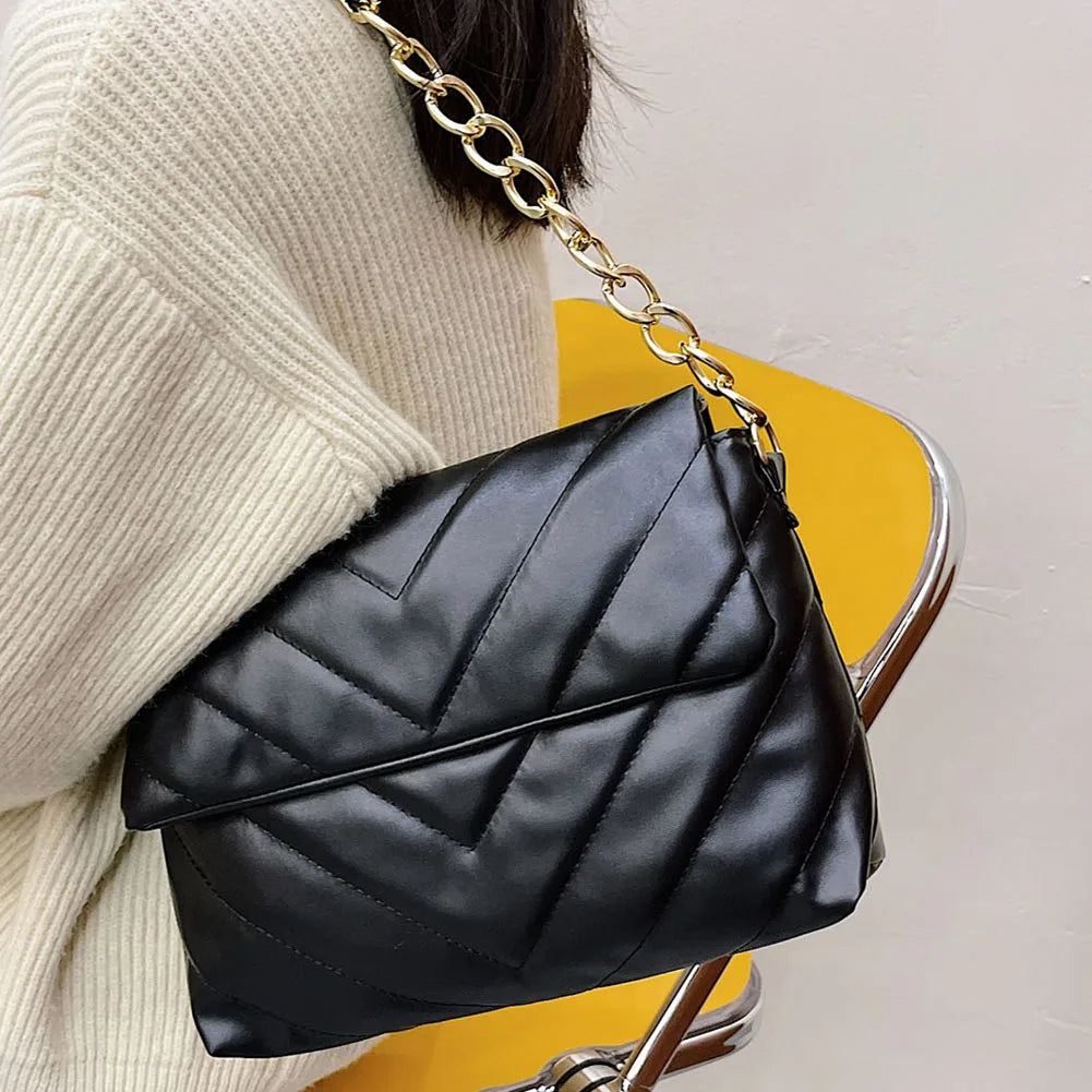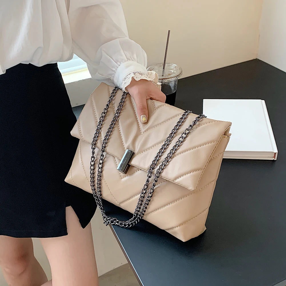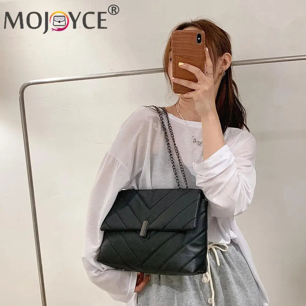 Women PU Messenger Bag Casual Ladies Chain Solid Flap Handbags