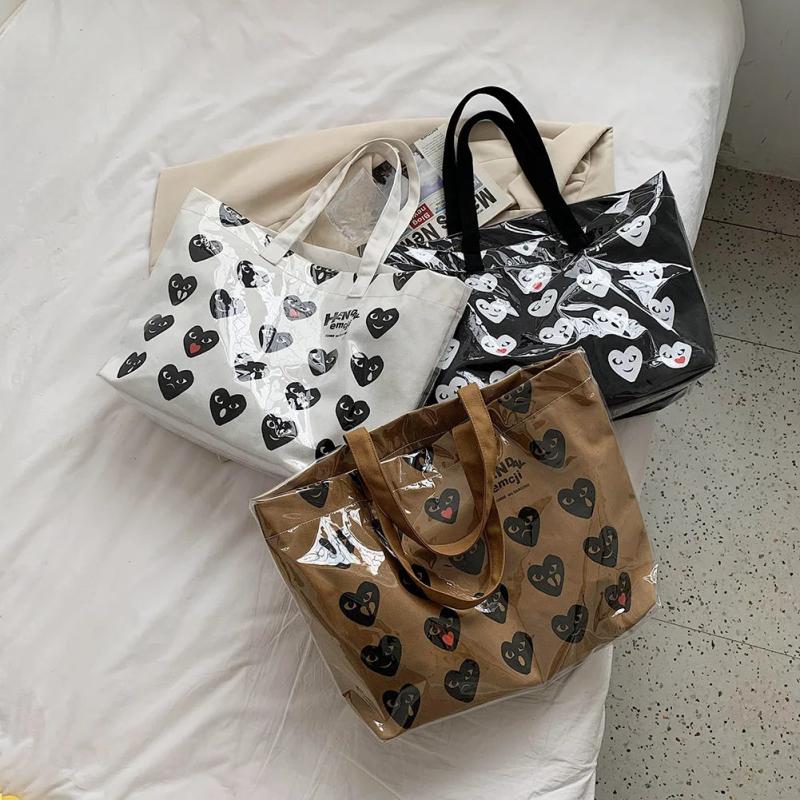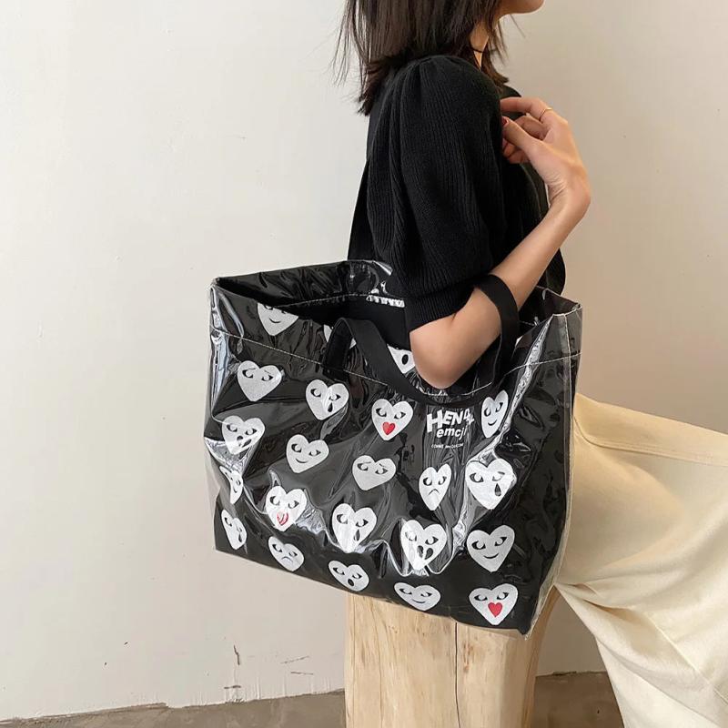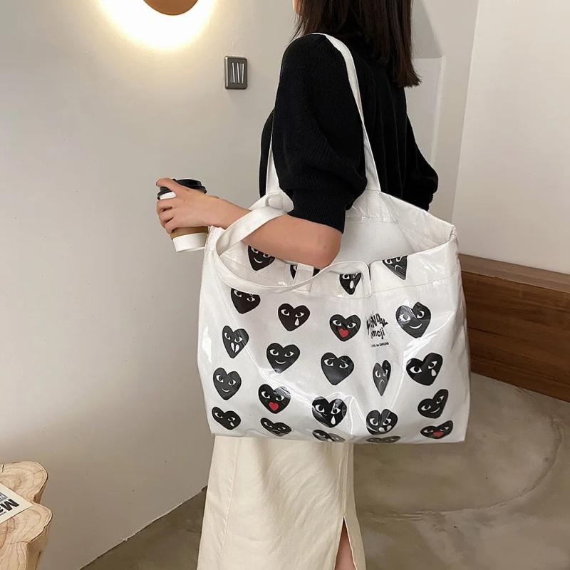 Women PVC Canvas Large Capacity Shoulder Underarm Bag Vintage Printing Handbag