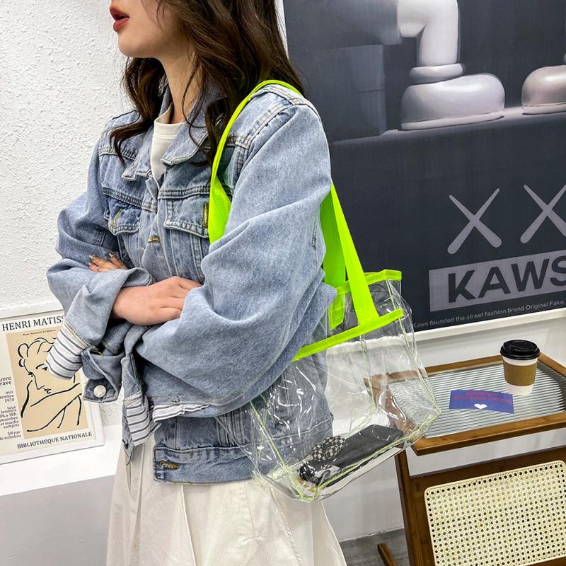 This women's PVC transparent handbag is perfect for casual outings, summer days at the beach, or everyday use. It adds a trendy and modern touch to your outfit.