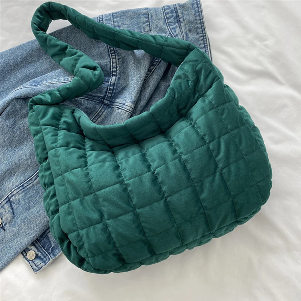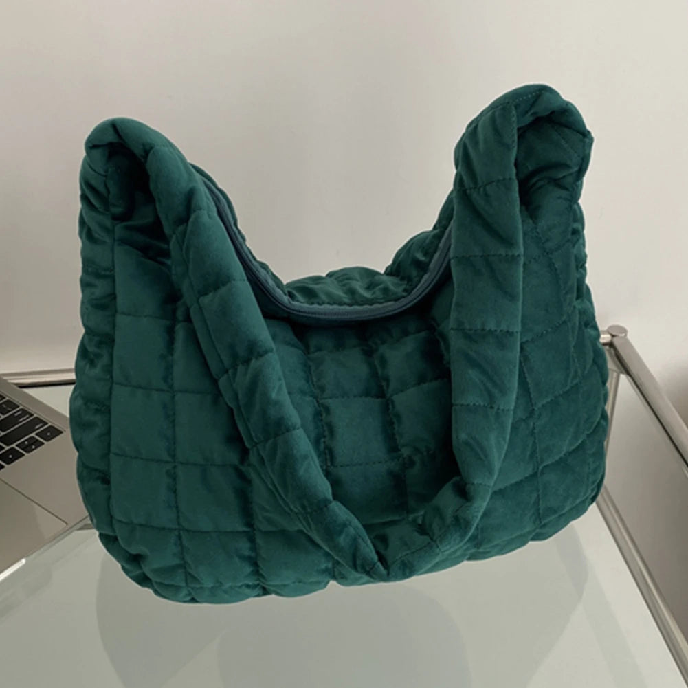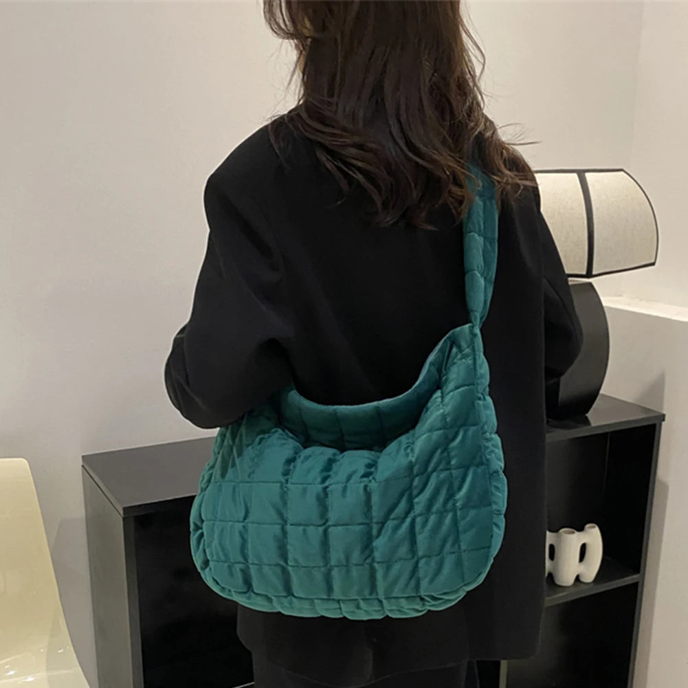 Women Quilted Plaid Messenger Bag Soft Large Capacity for Travel