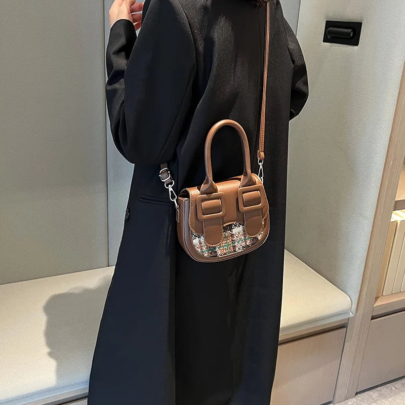 This stylish handbag is perfect for everyday use. Made of high-quality PU leather, it features double buckle closure and a crossbody strap. The compact size makes it ideal for carrying your essentials.