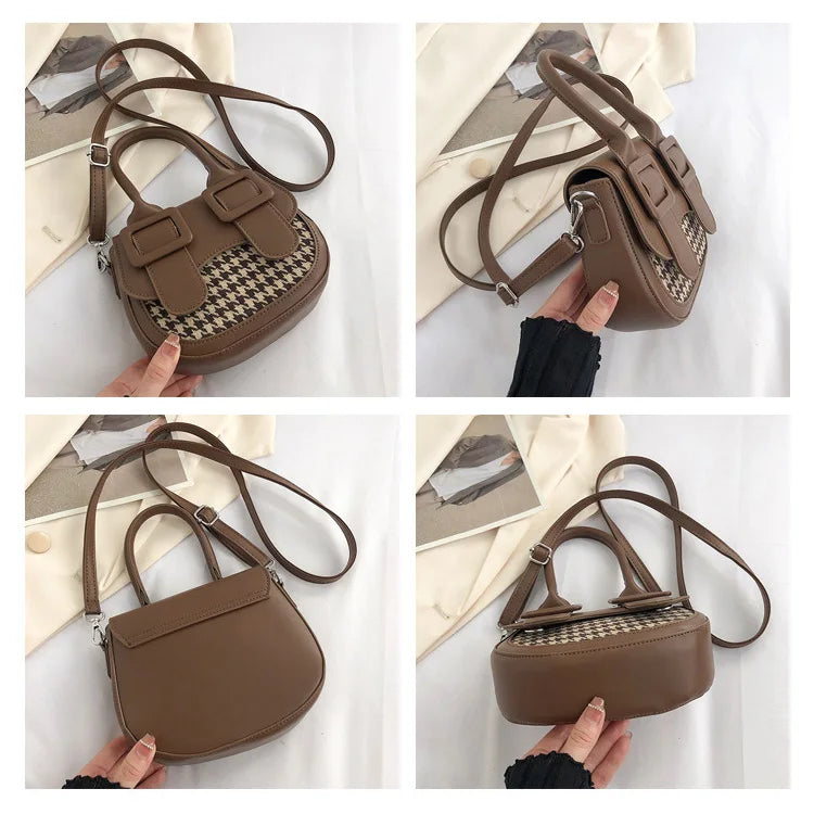 Women Saddle Handbag Double Buckle Shoulder Bags Casual Clutch Bag