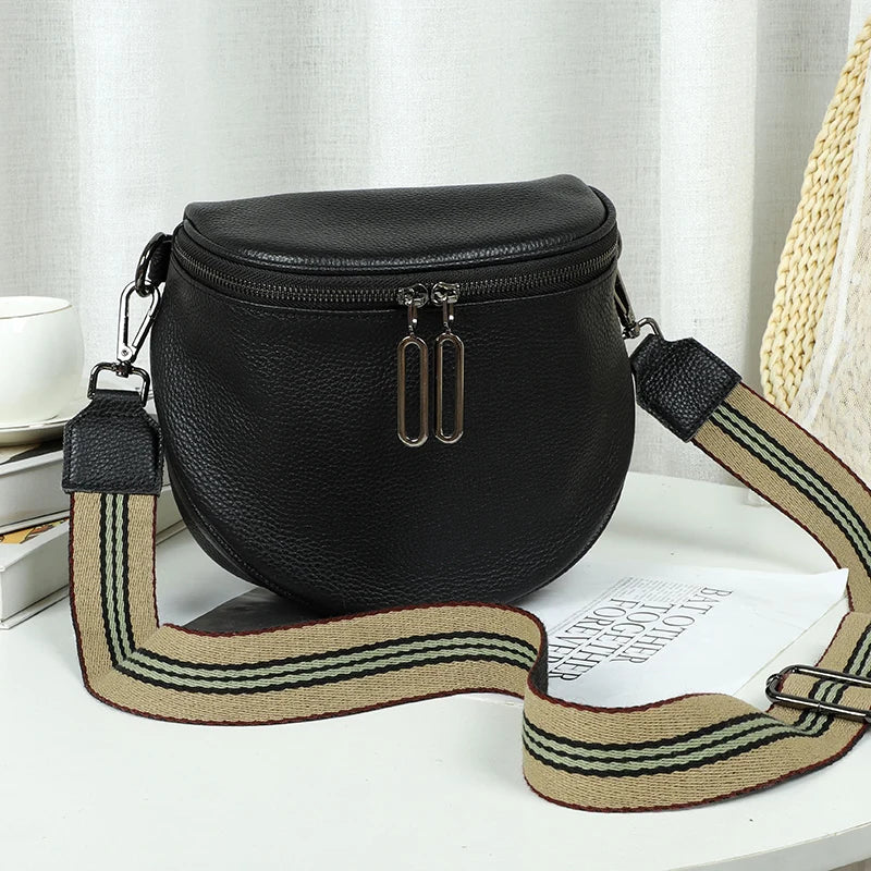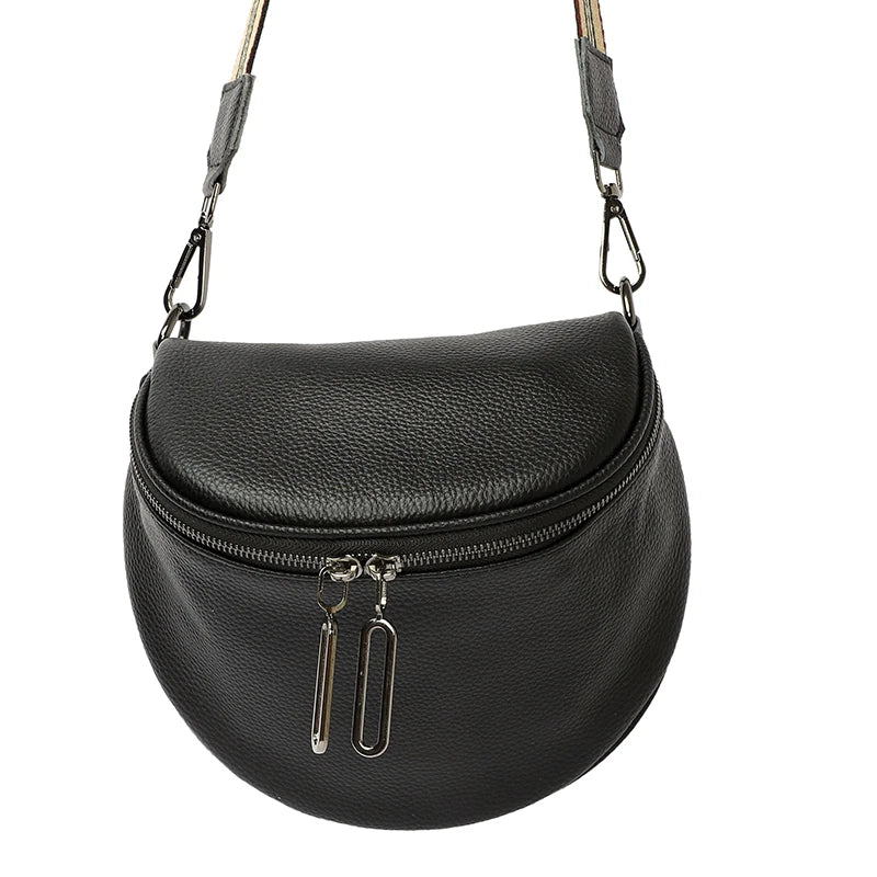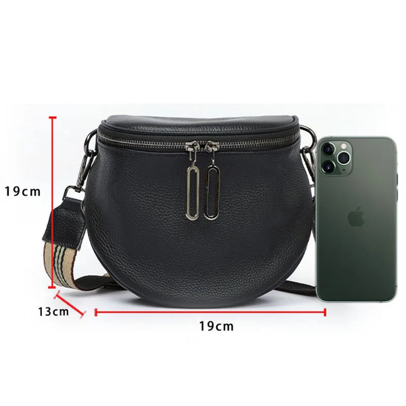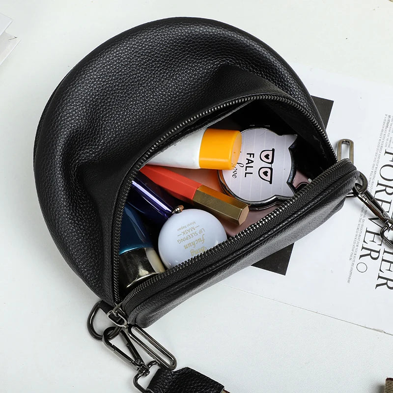 This stylish women's crossbody bag is made of high-quality soft leather. It features a unique semicircle design, making it a fashionable and functional accessory for any outfit.