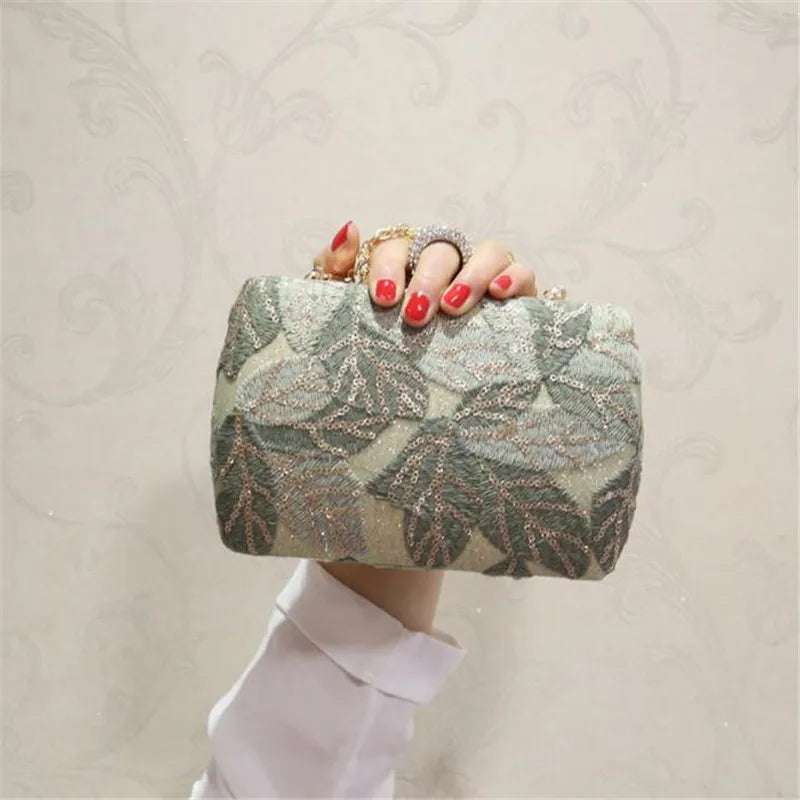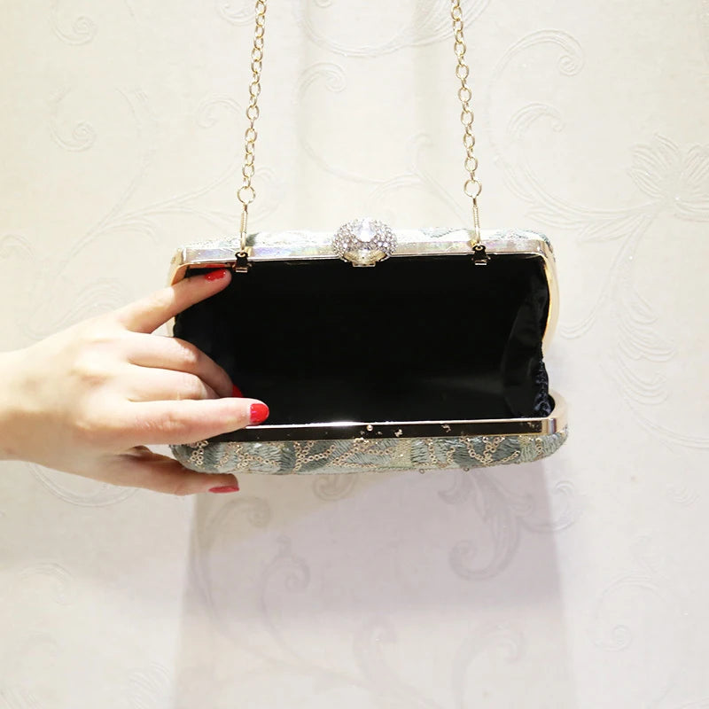 This elegant clutch wallet features bling embroidery and sparkling sequins, perfect for evening events and banquets.