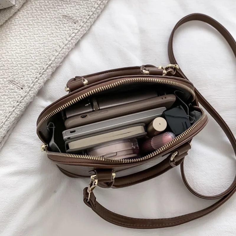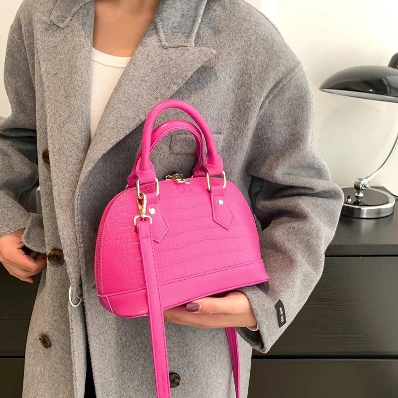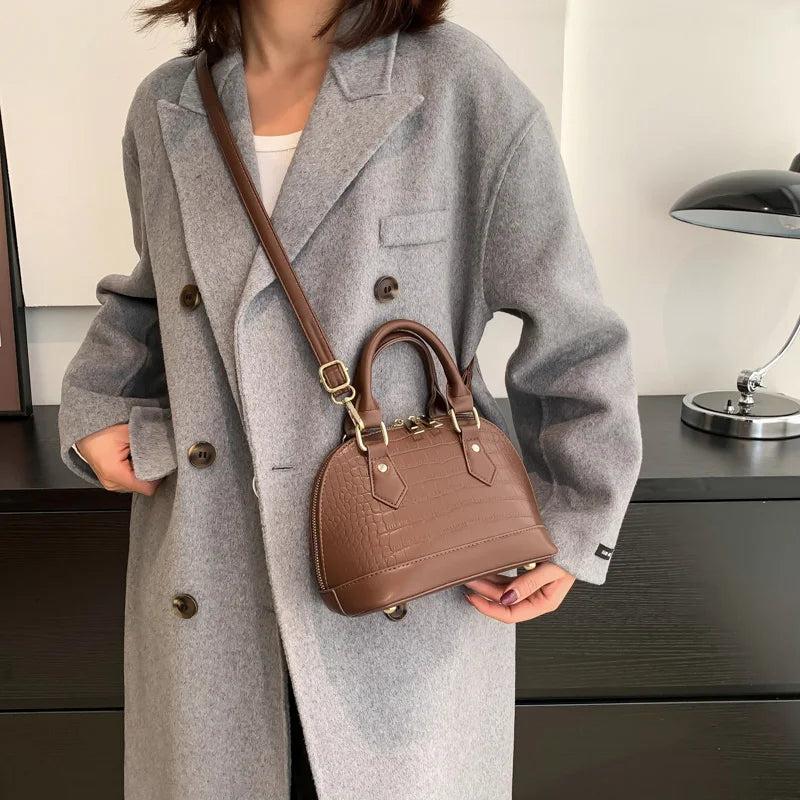 Elevate your style with this classic lady top handle bag. It features a trendy print and is made of high-quality leather. Perfect for any occasion.