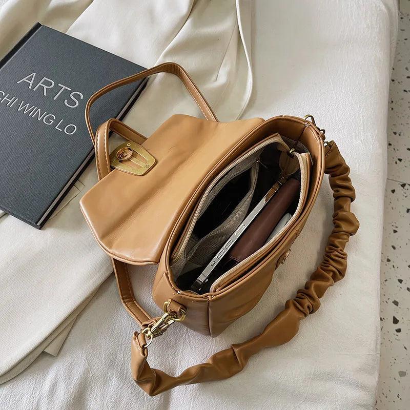 High-quality women's shoulder bag made of premium leather with a fold design. This crossbody purse is suitable for daily use. It's a small flap bag that enhances your style.