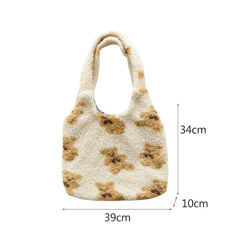 Women Shoulder Bag Fuzzy Fur Bear Handbag Tote School Girl Cotton Lady Shopper