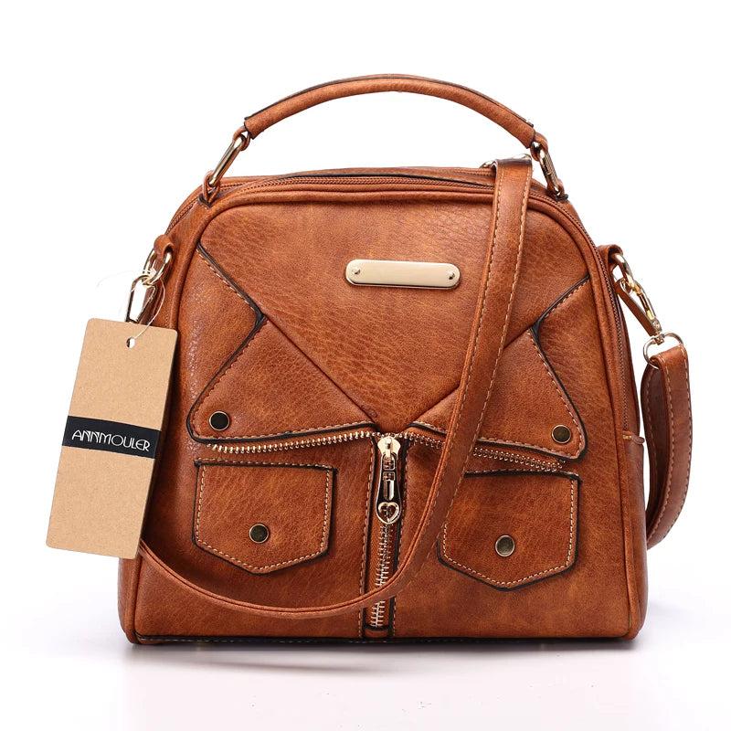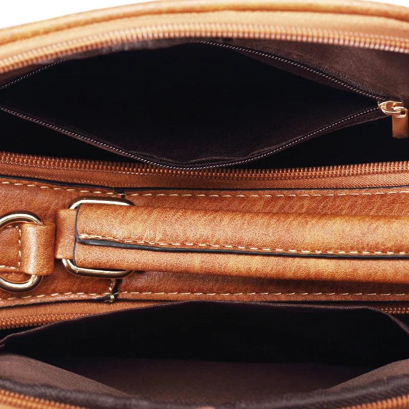 Women Shoulder Bag Handbag Pu Leather Double Zipper Tote Bag Brown