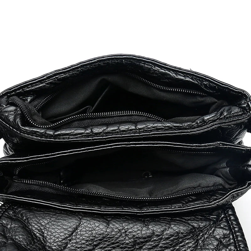 This women's shoulder bag is made of high-quality PU leather, featuring a soft washed leather design. It has double zippers for easy access and a comfortable crossbody strap.