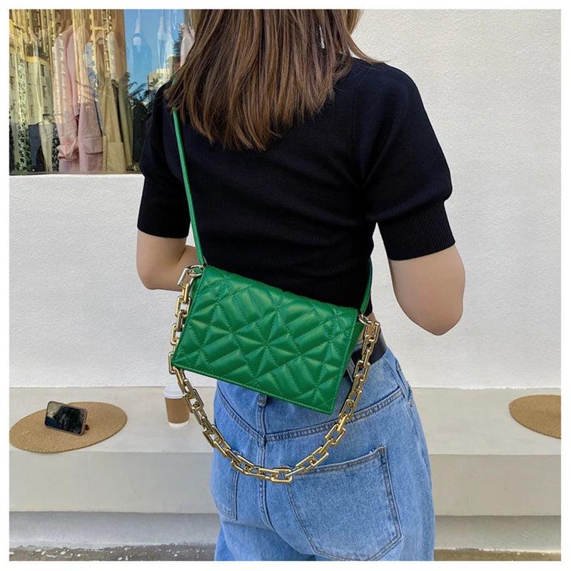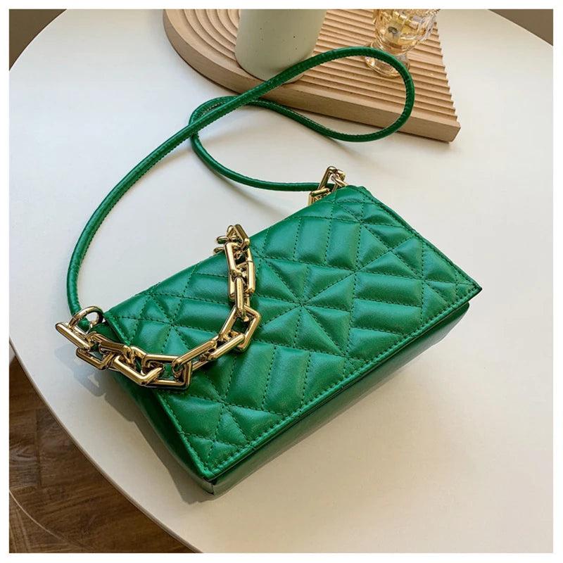 Stay stylish with this leisure shoulder bag featuring thick chain underarm and rhombus embroidery. Perfect for everyday use.