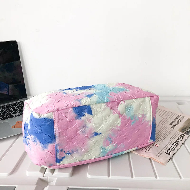 Women Shoulder Bag Tie-Dye Contrast Nylon Wide Strap Messenger Bag