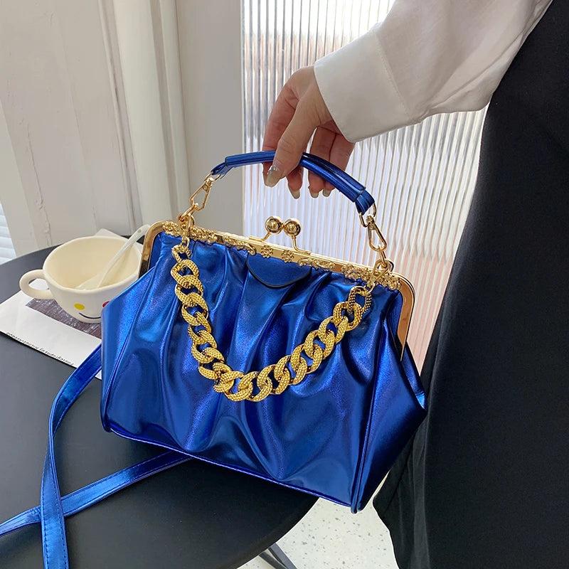 This stylish shoulder bag is made of high-quality PU leather, featuring a small size with a thick chain strap. Perfect for daily use or as a Christmas gift.