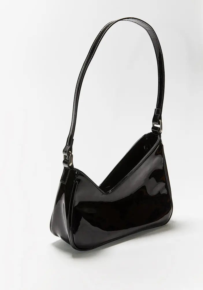 Elegant patent leather shoulder bag for women. Perfect for all occasions. Features a high-quality zipper and spacious interior.