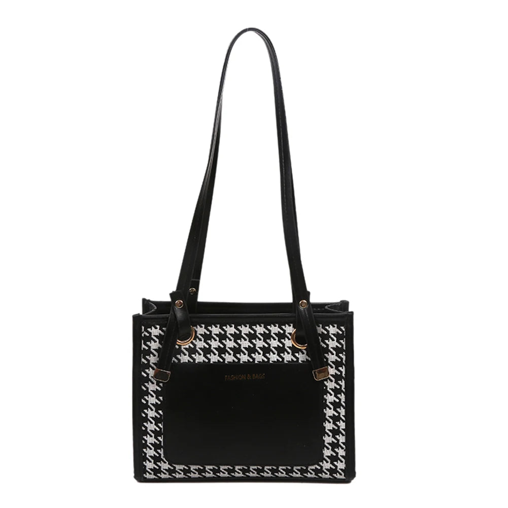Women Shoulder Bags PU Houndstooth Pattern Handbags for Daily Travel