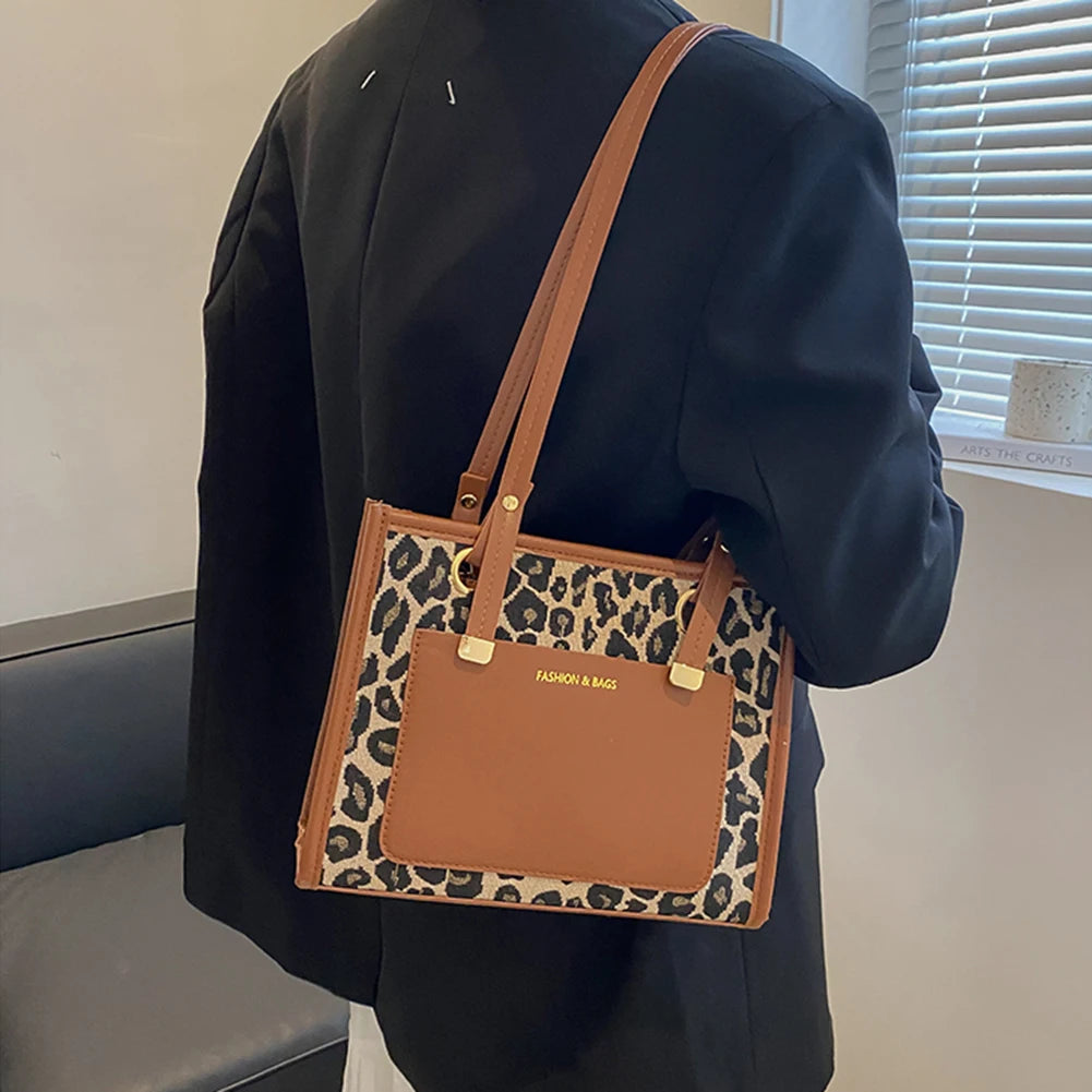 Stay stylish with this PU shoulder bag featuring a houndstooth pattern and animal print design. Perfect for daily use and travel.