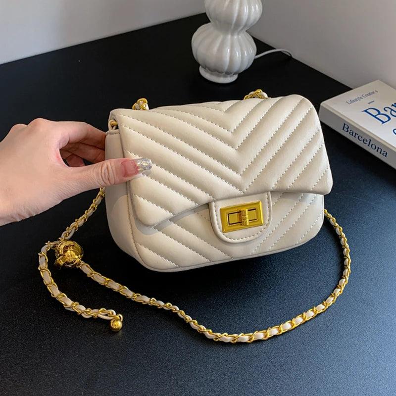 This classic thread shoulder bag is perfect for ladies on the go. It features a turnlock closure and a stylish chain strap, making it a versatile accessory for any outfit.