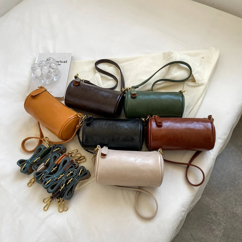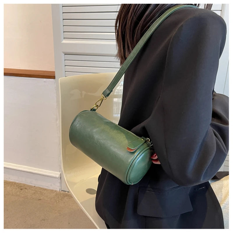 This women's shoulder bag features a barrel shape design, perfect for everyday use. It is a versatile handbag that is both stylish and functional.