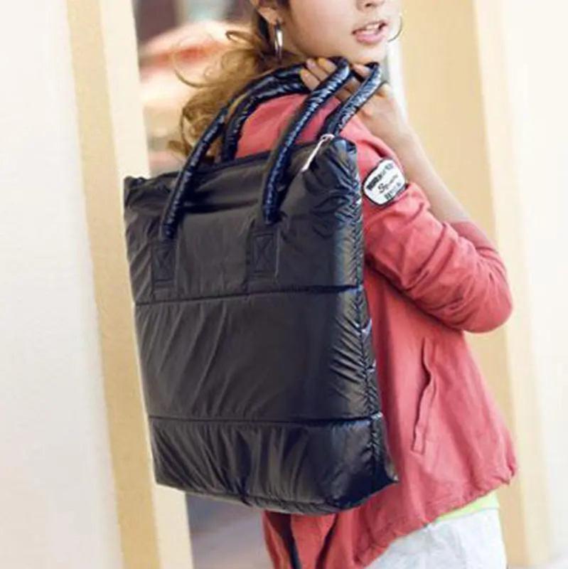 This stylish shoulder bag is perfect for carrying your essentials with ease. Made from space pad cotton and feather down, it offers a high capacity for all your shopping needs.