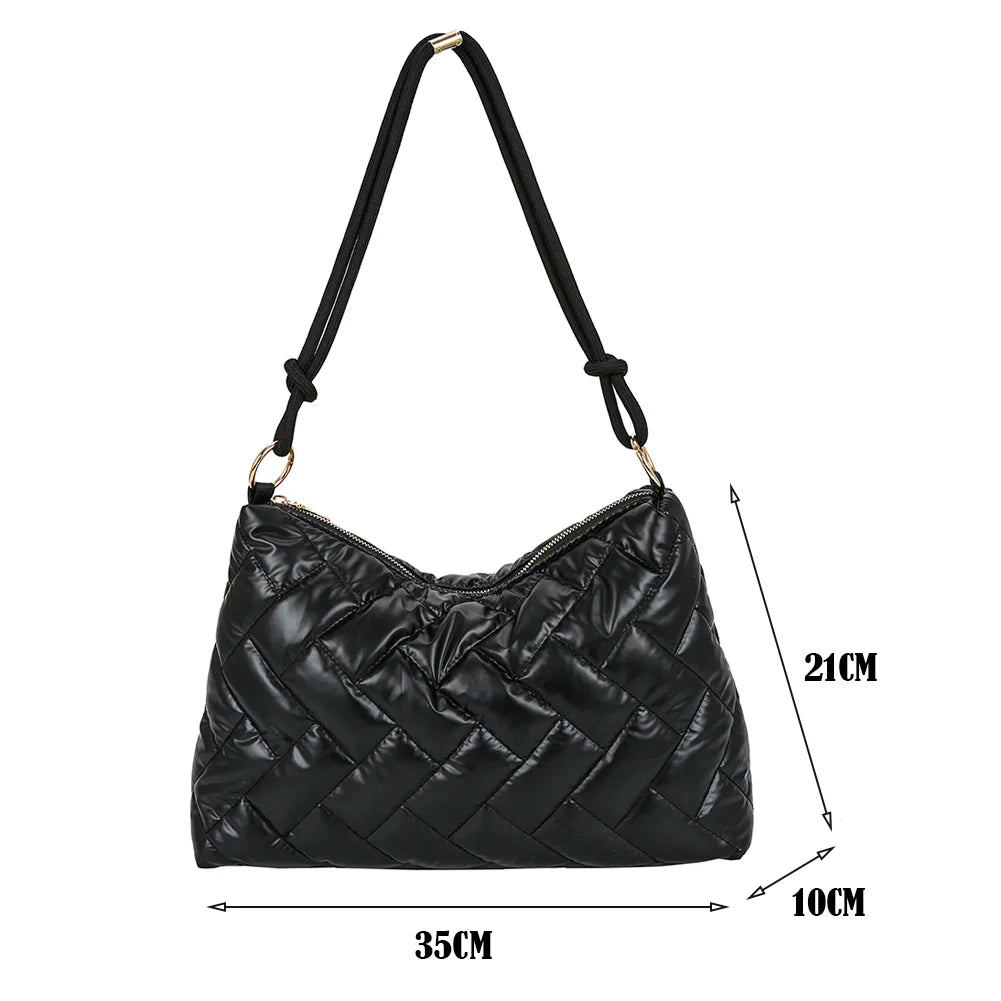 This stylish shoulder bag is made of padded nylon with a quilted lattice design. It features a solid zipper closure and a large capacity for all your essentials. Perfect for casual outings or everyday use.