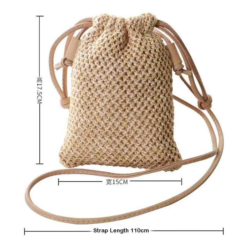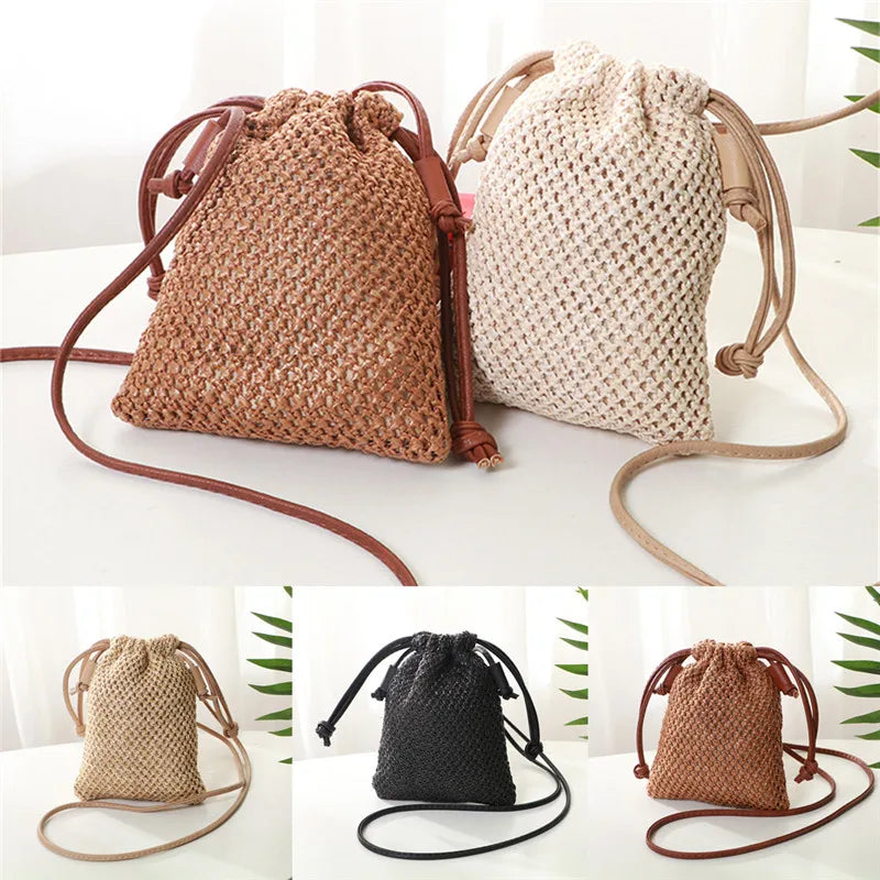 Women Straw Bag Rattan Tote Handbag Woven Beach Shoulder Bags Drawstring