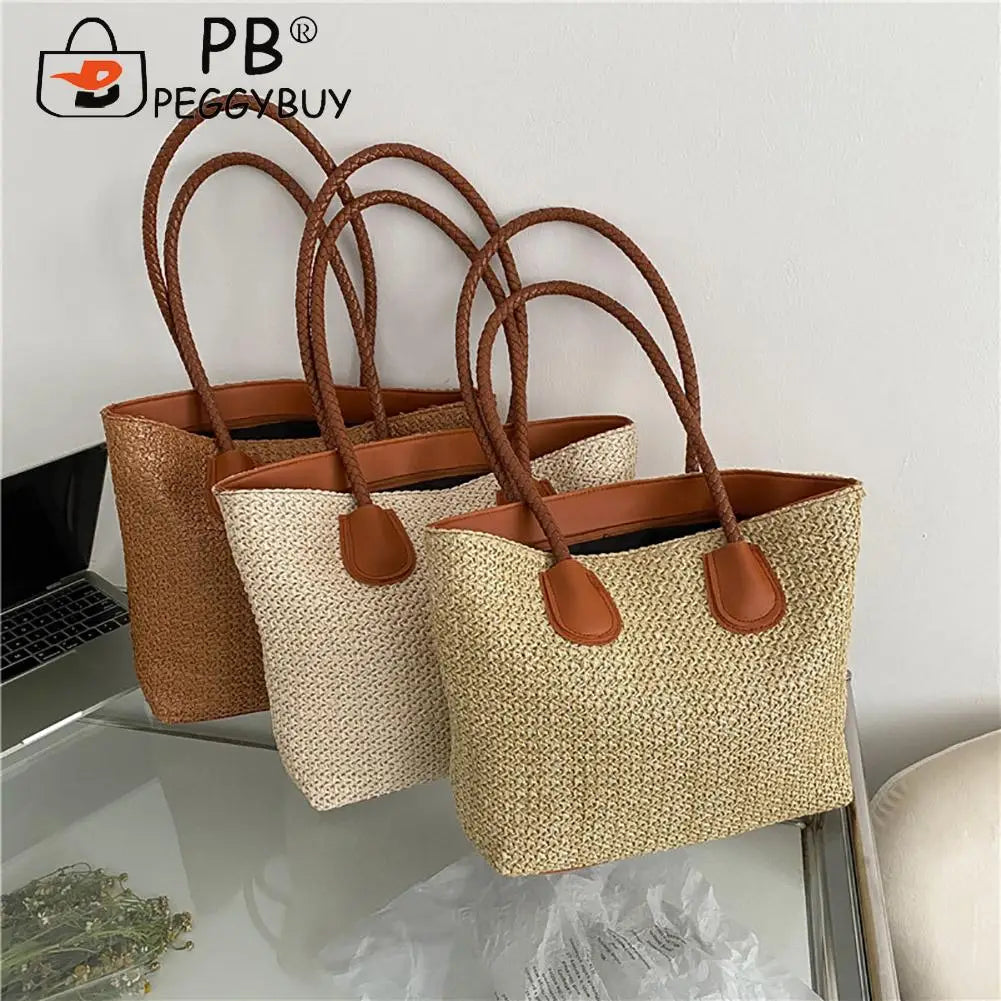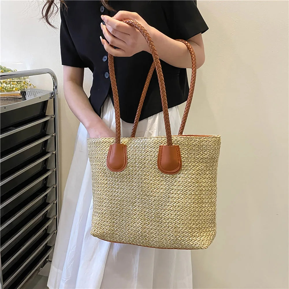 Women Straw Shoulder Bag Beach Rattan Handbag