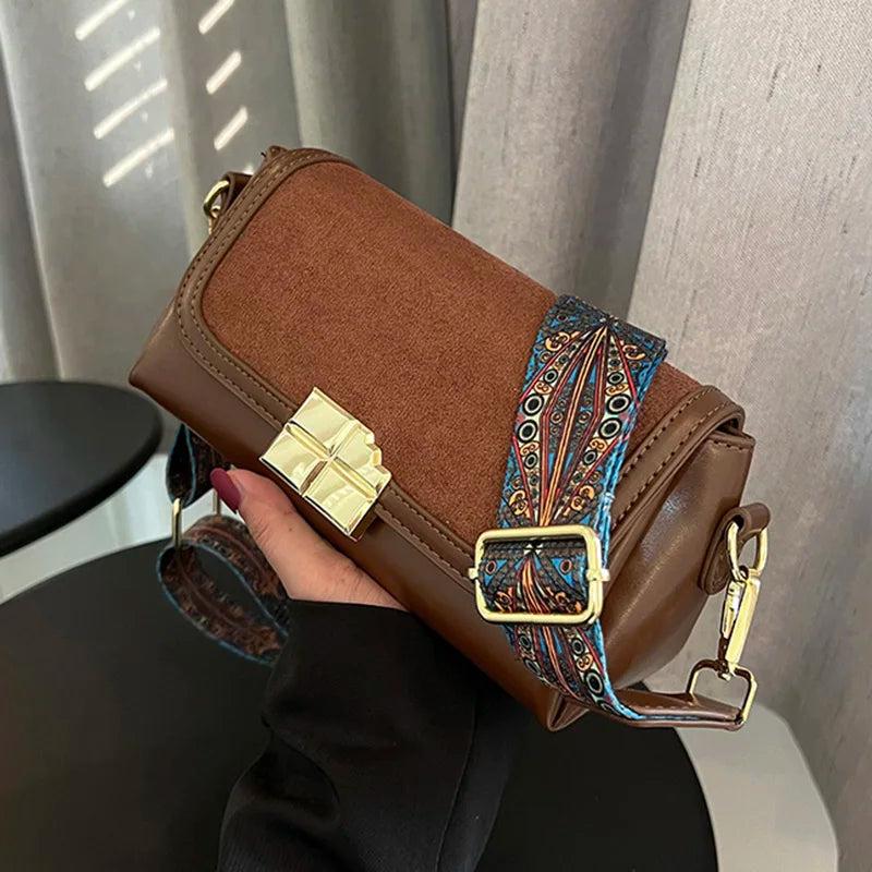 Embrace retro style with this women's suede handbag and purse. It features a high coffee shade, perfect for any occasion.