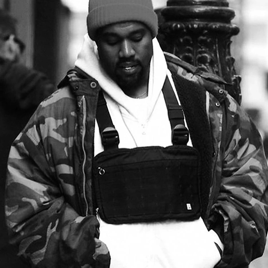 Elevate your streetwear with this classic chest utility bag inspired by Kanye style. Perfect for carrying essentials with a hip-hop flair.