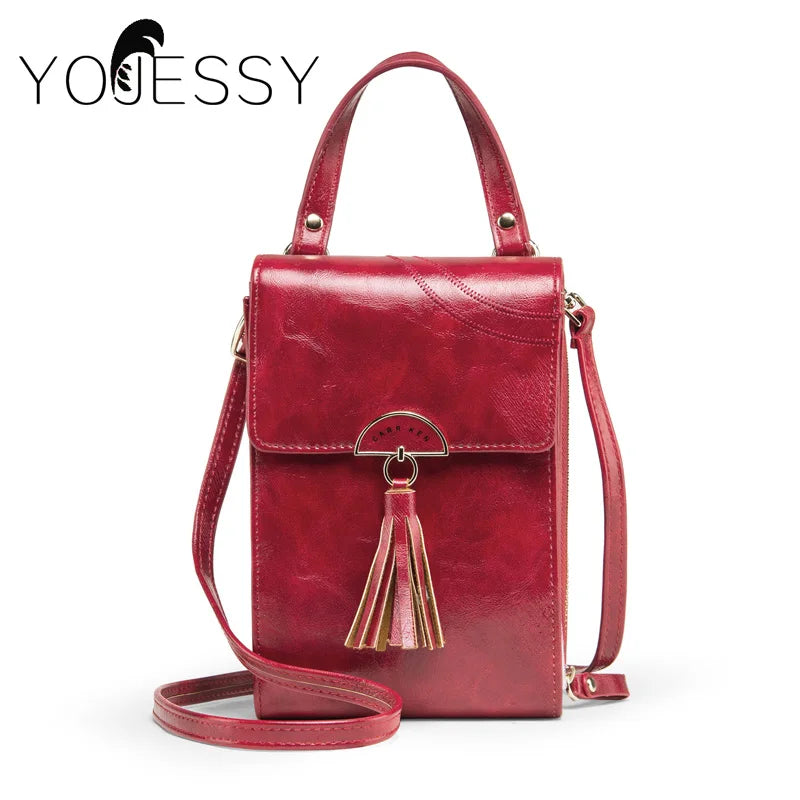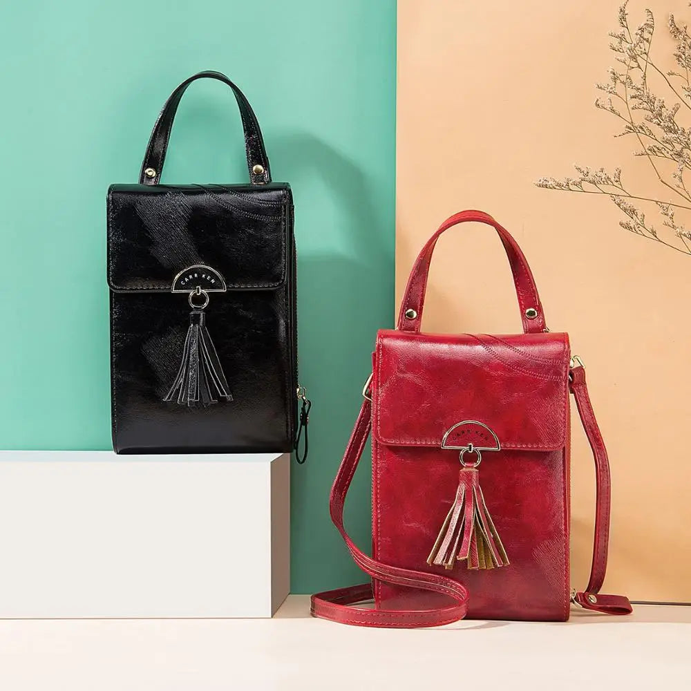 Stay stylish and organized with this women's crossbody bag made from high-quality PU leather. Features a tassel accent and a convenient cell phone pocket. Perfect for daily use or special occasions.