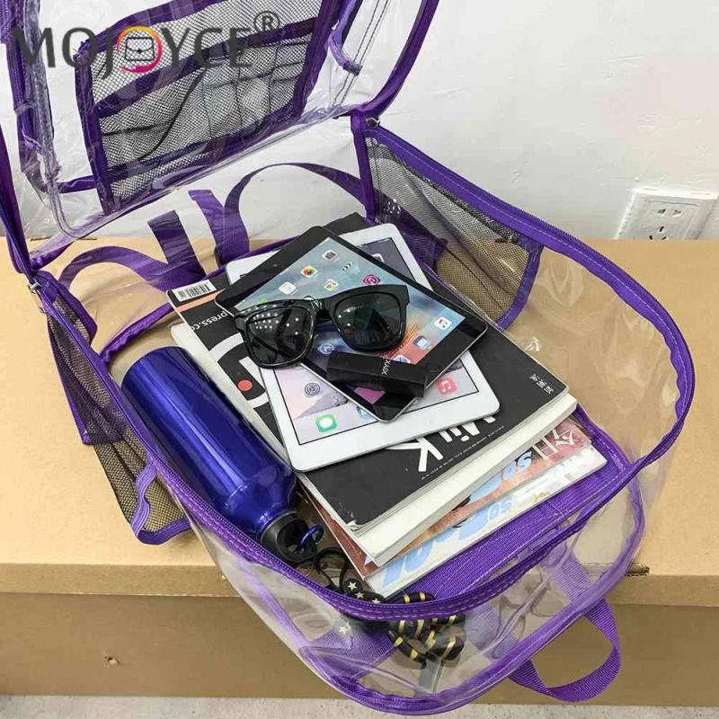 This women's backpack features transparent layers for a unique and stylish look. It offers ample storage space and is perfect for daily use.