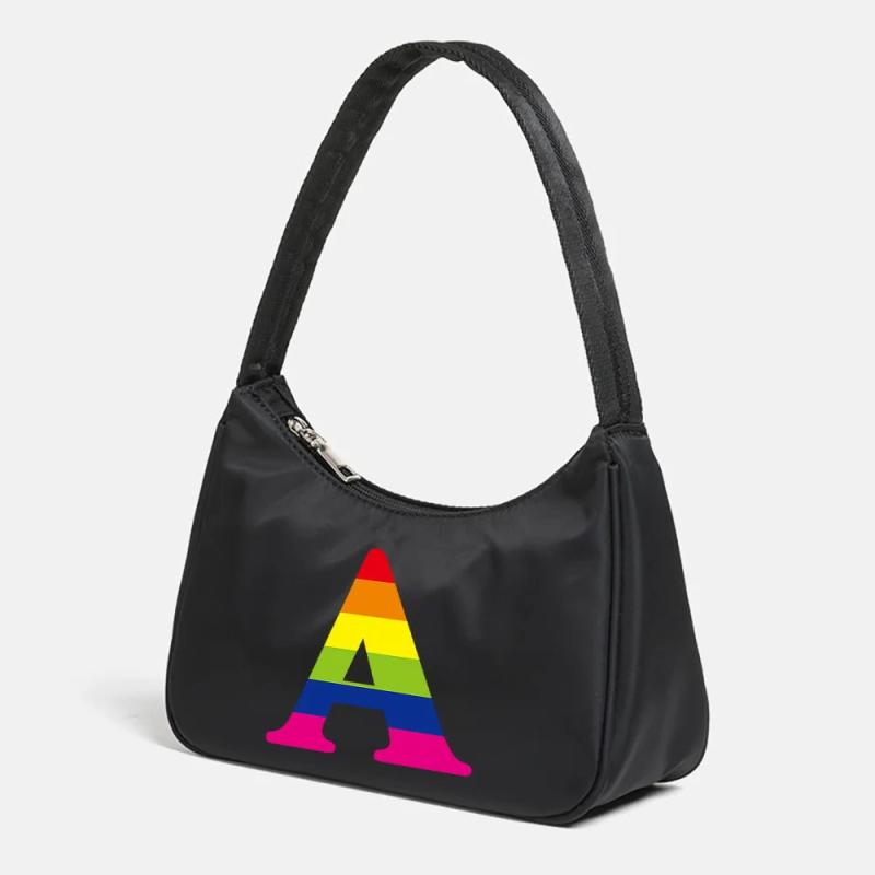 Stay stylish with this retro rainbow letter pattern underarm bag. Perfect for carrying essentials and adding a pop of color to your outfit.