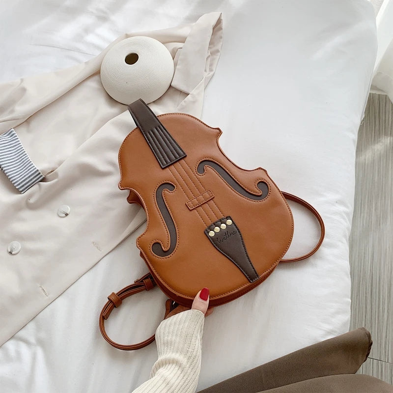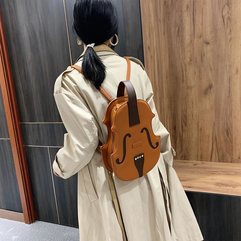Women Violin Shape Leather Backpack Handbag Rucksack