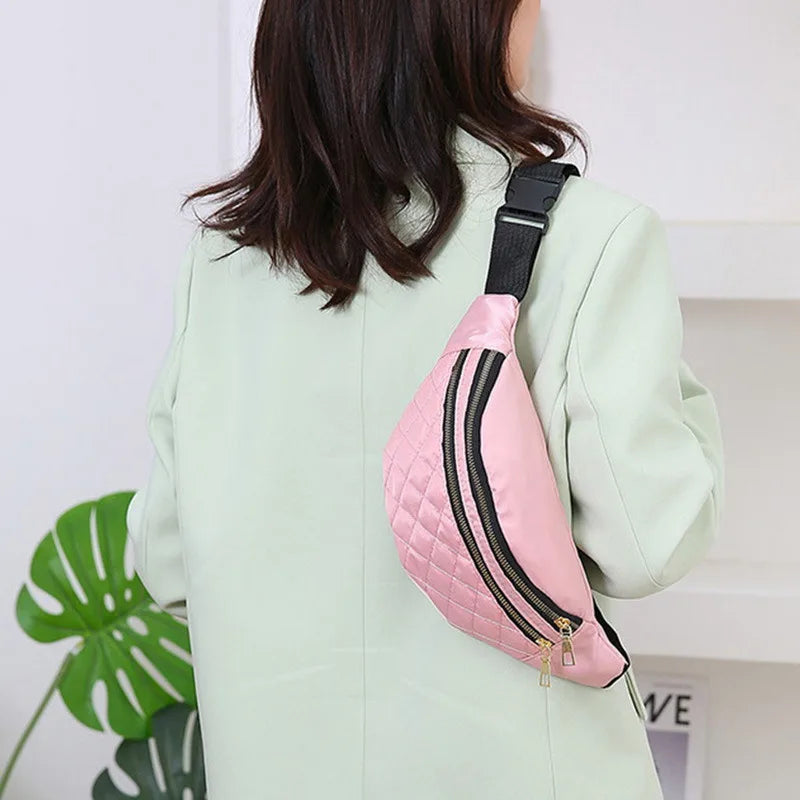 This waist bag is perfect for women on the go. It can be worn as a fanny pack, chest bag, shoulder bag, or crossbody bag, making it versatile for different occasions. Keep your essentials close at hand while you party or travel with this stylish and functional bag.