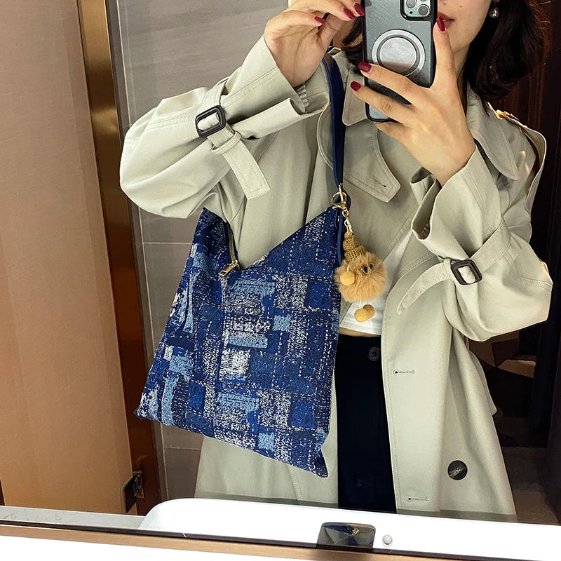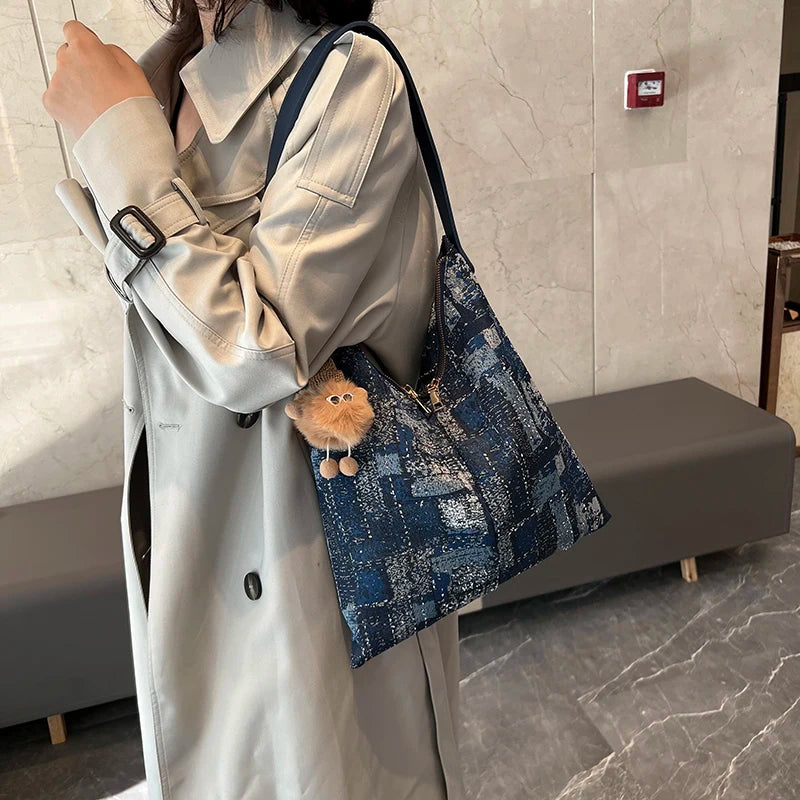 Elevate your style with this high-quality fabric shoulder bag, perfect for the autumn and winter seasons. This Western-style tote bag offers a large capacity for all your essentials.