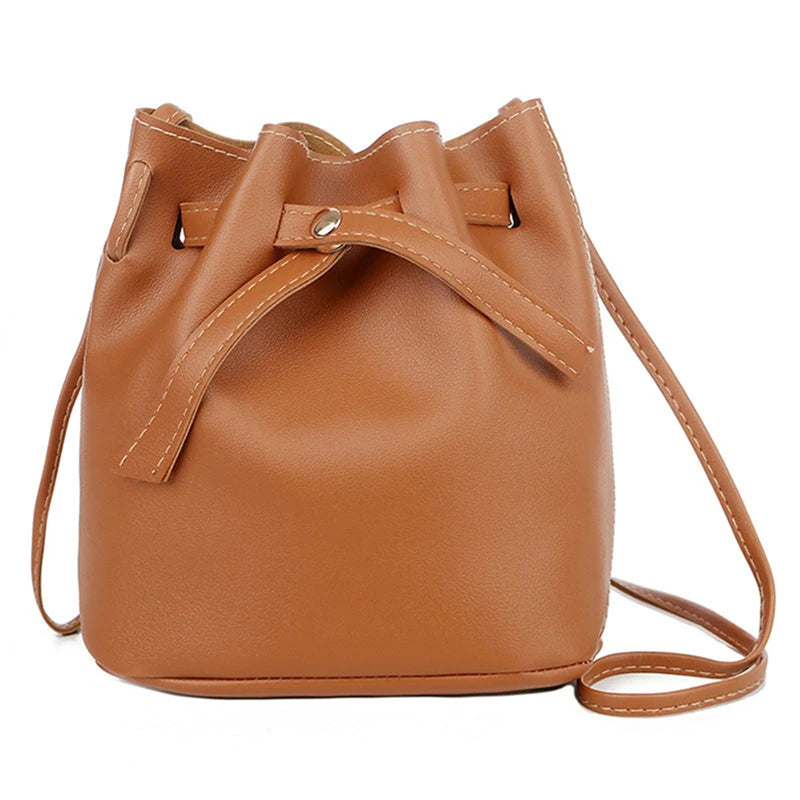 This stylish bucket bag is perfect for spring and summer. It features a solid color design and a comfortable shoulder strap.