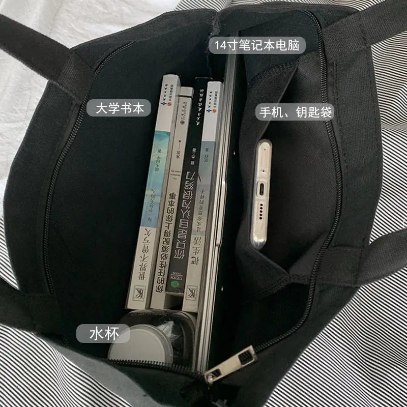 Women's Canvas Shopping Bag Lightweight Casual College Shoulder Bag