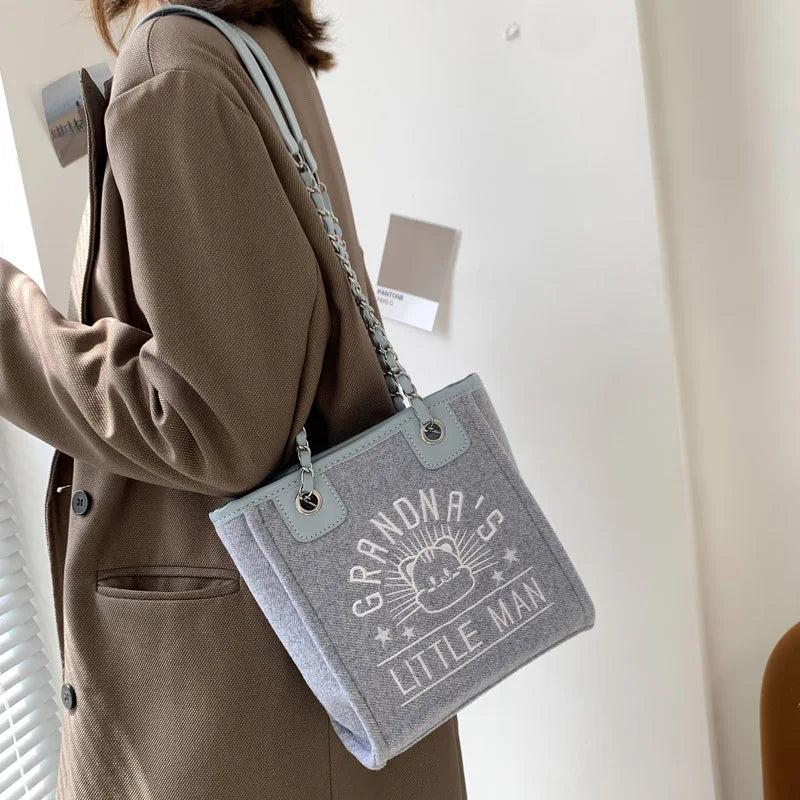 Women's Canvas Shoulder Bag Chain Tote Travel Purses