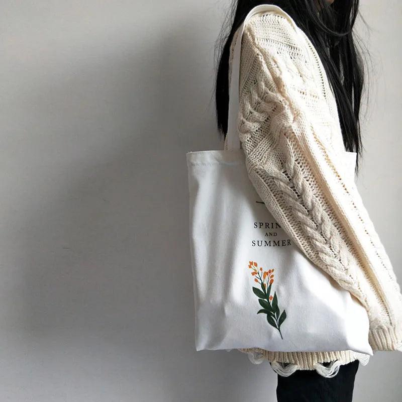 Women's Canvas Shoulder Bag Flowers Printing Shopping Eco Reusable Tote Handbag